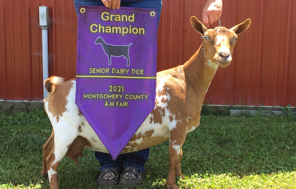 2019- Shrimp with her buckling “Runyan Farms Mammoth”